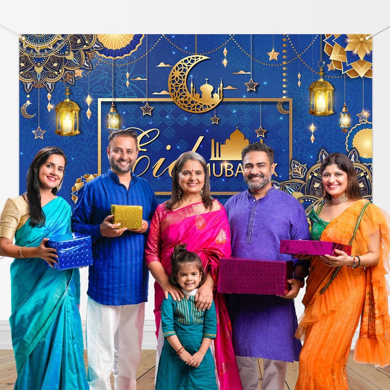Mocsicka Eid Mubarak Banner Backdrop for Muslim Ramadan Kareem Banner Eid al-Fitr and Eid al-Adha Eid Mubarak Background Party Supplies (Blue, 70.8x43.3 inch)