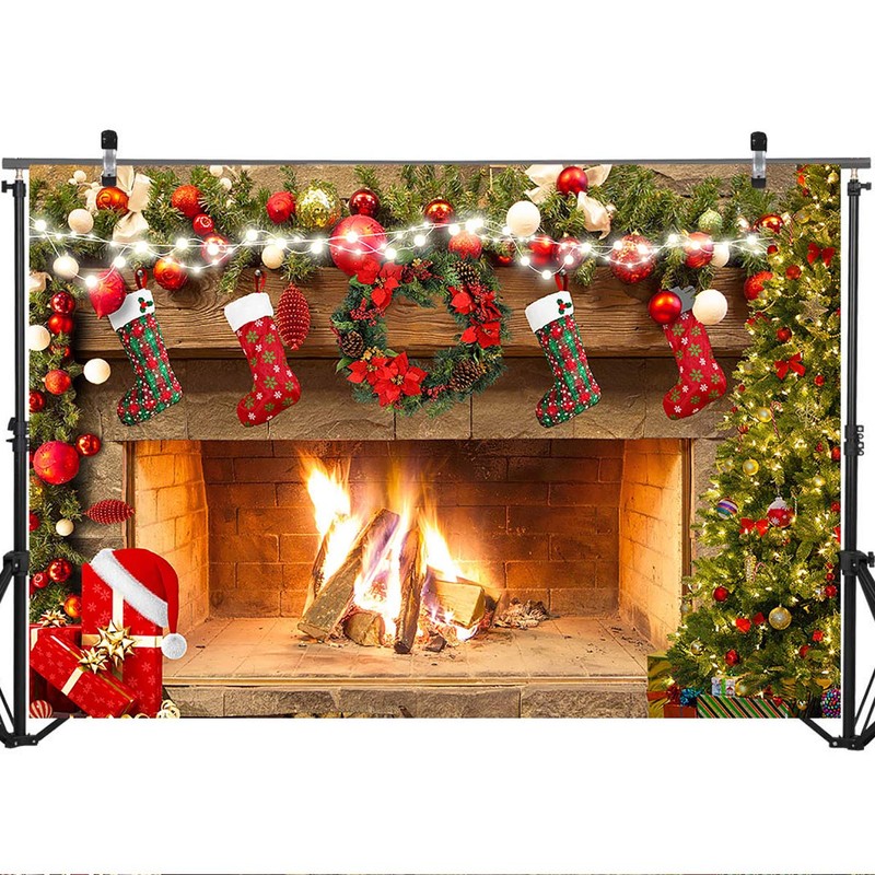 Mocsicka Fireplace Backdrop 5x3ft Merry Christmas Fireplace Family Party Decorations Picture Photo Backdrops Xmas Socks Trees Photography Background