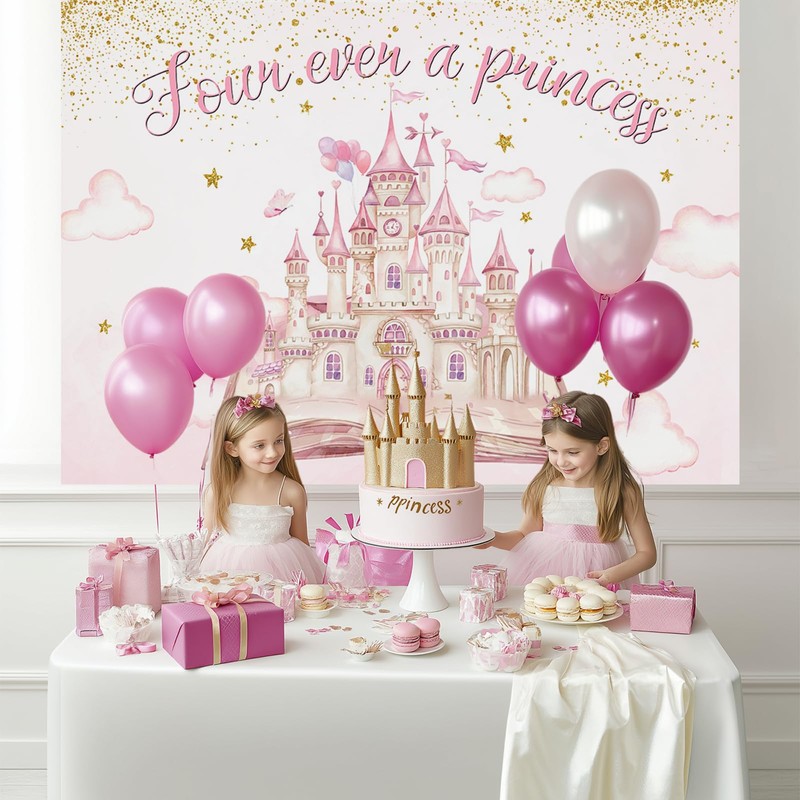 - 【Various size】: This princess backdrop for girls birthday is 7 feet wide by 5 feet high (210x150cm) The package only include a four ever a princess birthday decorations backdrop, the stand not include. simply clip, nail or tape to the wall or candy table supply props. Custom sizes are supported.