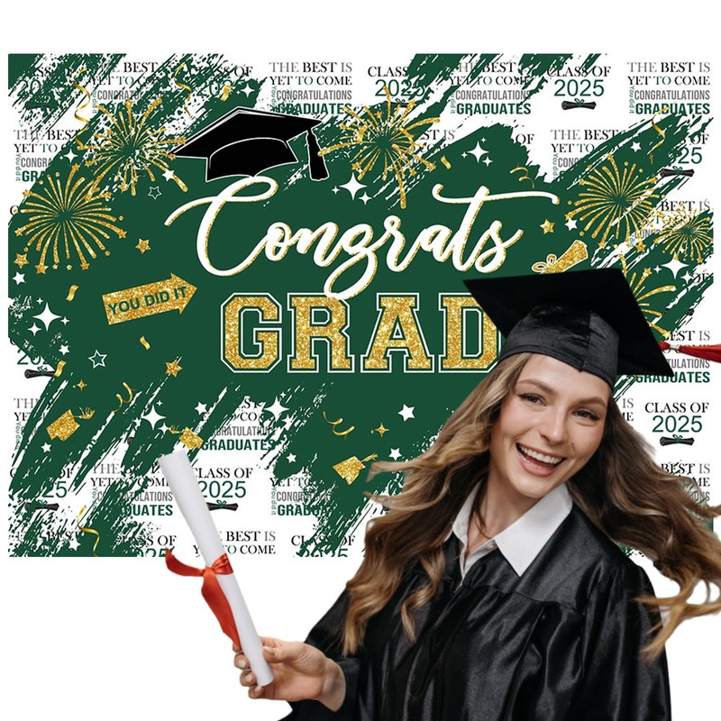 Mocsicka Graduation Backdrop Congrats Grad Green and Gold Graduate Party Decorations Background Class of 2025 Photography Backdrops (10x8ft)
