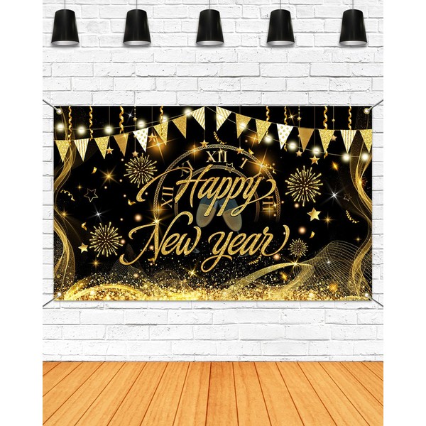 Mocsicka Happy New Year Backdrop Banner New Year 2025 Party Decorations Banner New Year Eve Banner New Years Party Supplies for Photography (Happy New Year, 70.8x43.3 inch)