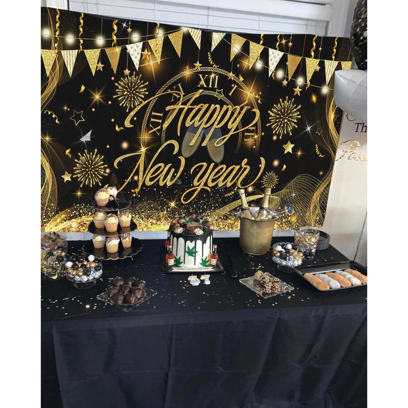 - Material: The Happy New Year party Decor Backdrop is made of durable polyester fabric, It's lightweight and vivid; It can be folded and easy to carry, it's washable and tear-resistant.