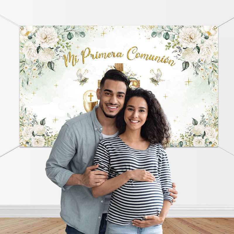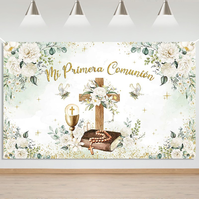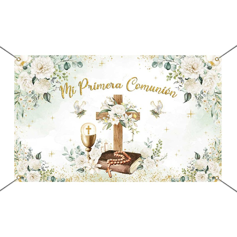 - SIZE: 70.8' (Width) x 43.3' (Height), the Mi Primera Comunion banner makes a vivid and festive backdrop for photos or a stunning decorative accent for indoor and outdoor parties