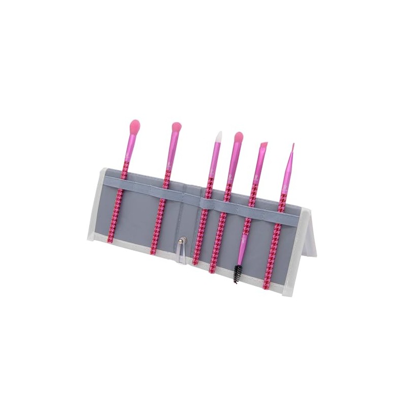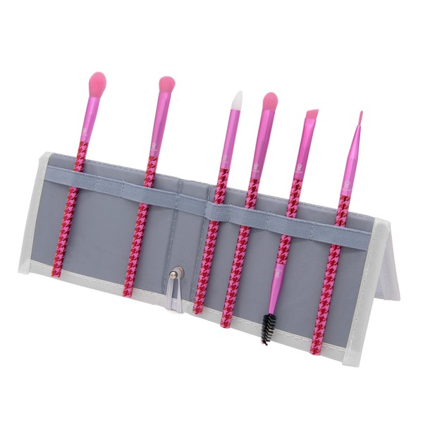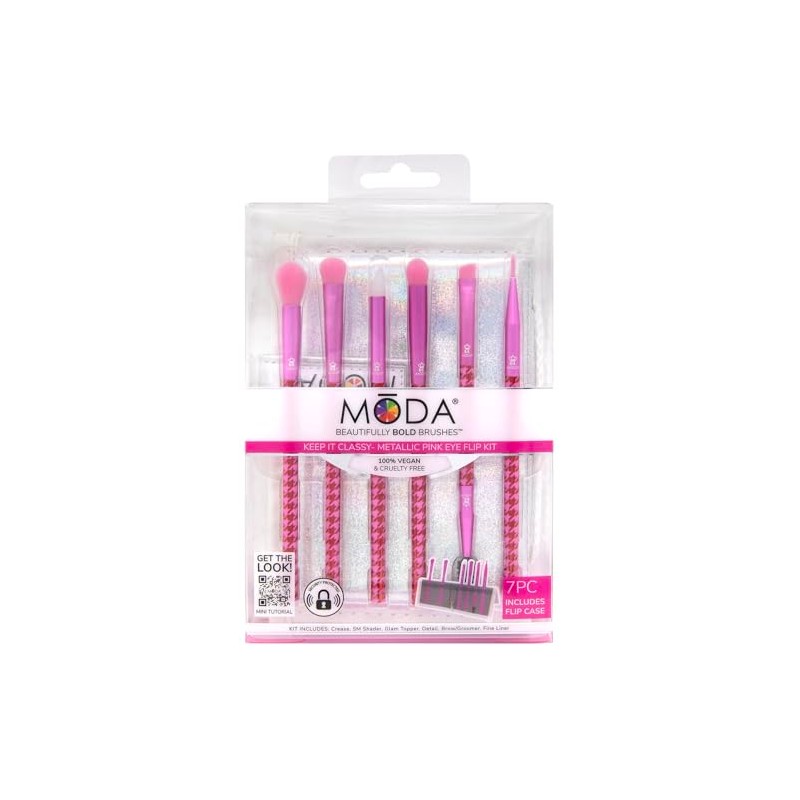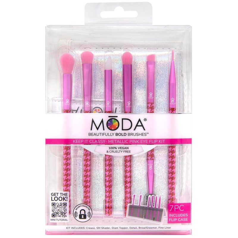 MODA Keep It Classy Eye Flip Kit – 7pc Travel-Size Makeup Brush Set in Metallic Pink, Vegan & Portable