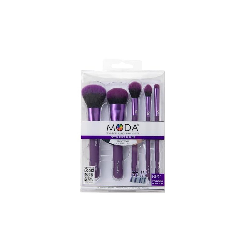 MODA Total Face Purple 6pc Makeup Brush Kit – Travel Eye Brush Set in Portable Flip Case