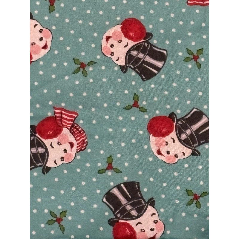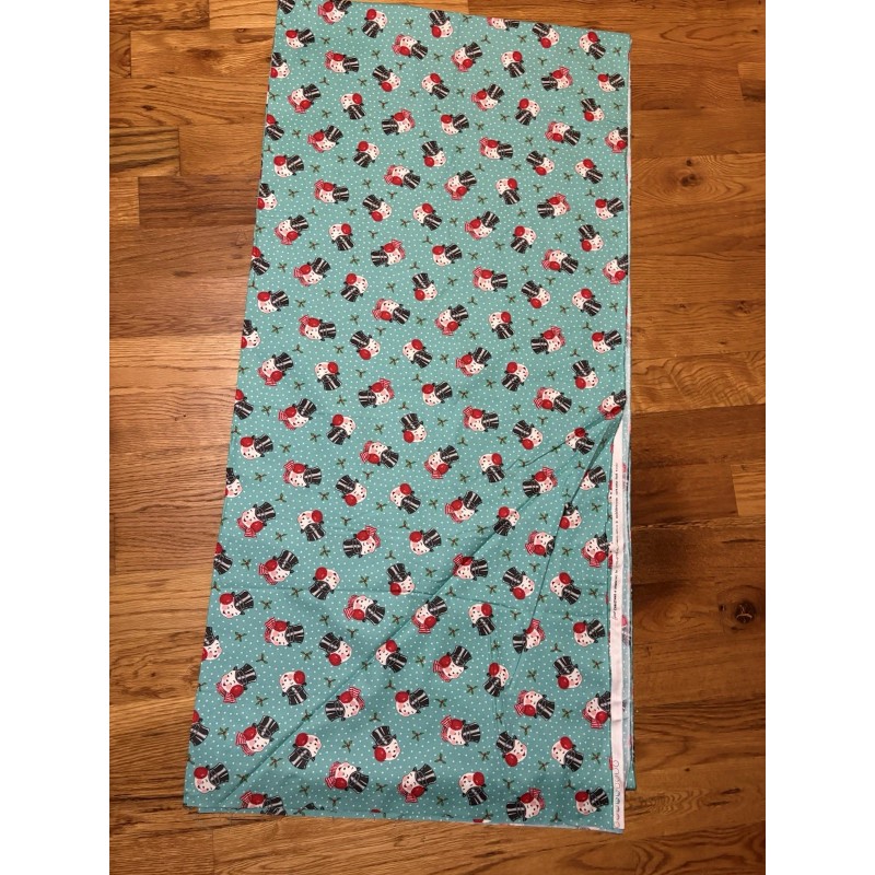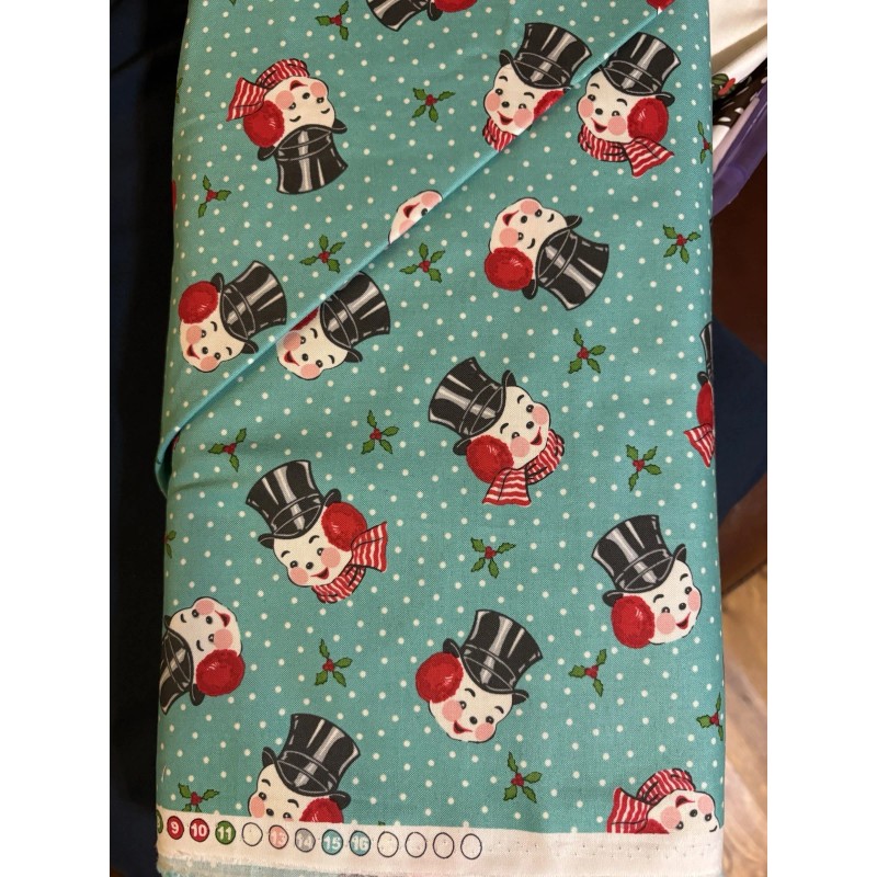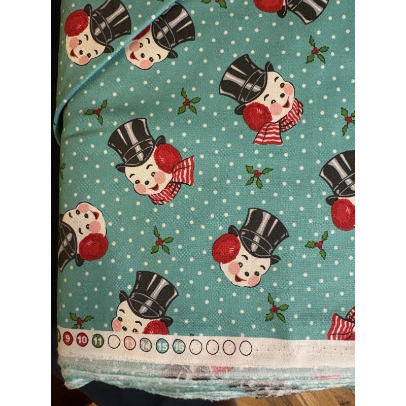 Beautiful out of print and hard to find snowman in turquoise. Sold by the half yard.