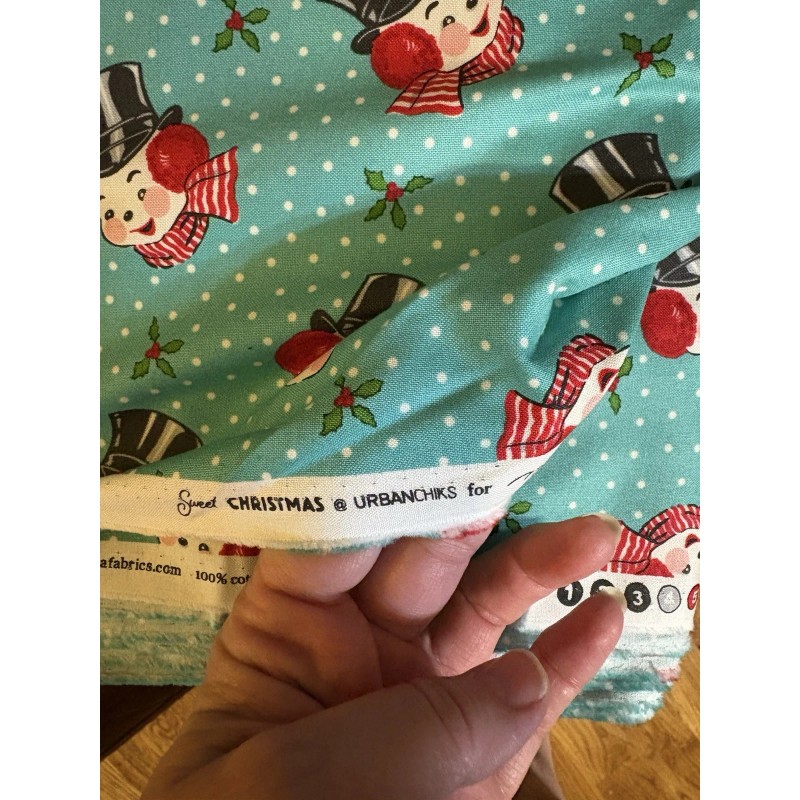 Moda Urban Chiks Sweet Christmas Turquoise Snowman 1/2 Yard OOP