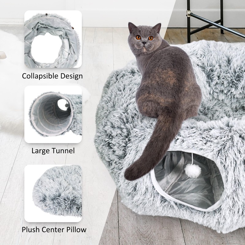 - MULTIPLE CONFIGURATIONS FOR VERSATILE USE: Easily transforms into one long tunnel, a donut-shaped bed, or two separate tunnels, catering to your cat's preferences and activity levels. This adaptable design ensures hours of fun and rest for your furry friend.