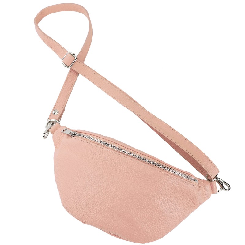 modamoda de - T211 - Italian Hip Bag, Chest Bag, Medium, Soft Leather, Pastel pink, s