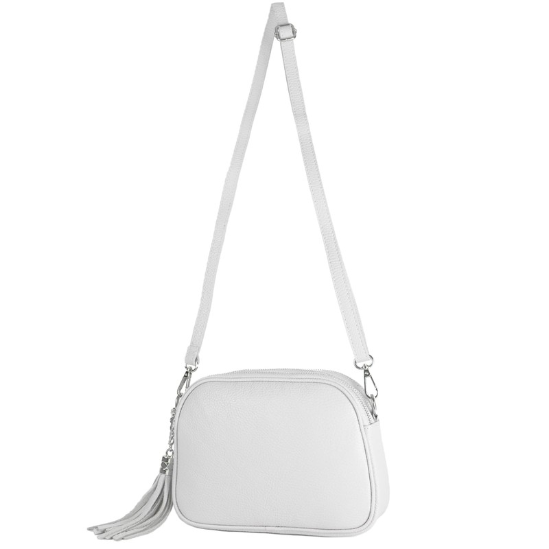 modamoda de - T238 Italian Women's Shoulder Bag Leather Medium, White, Sporty, elegant