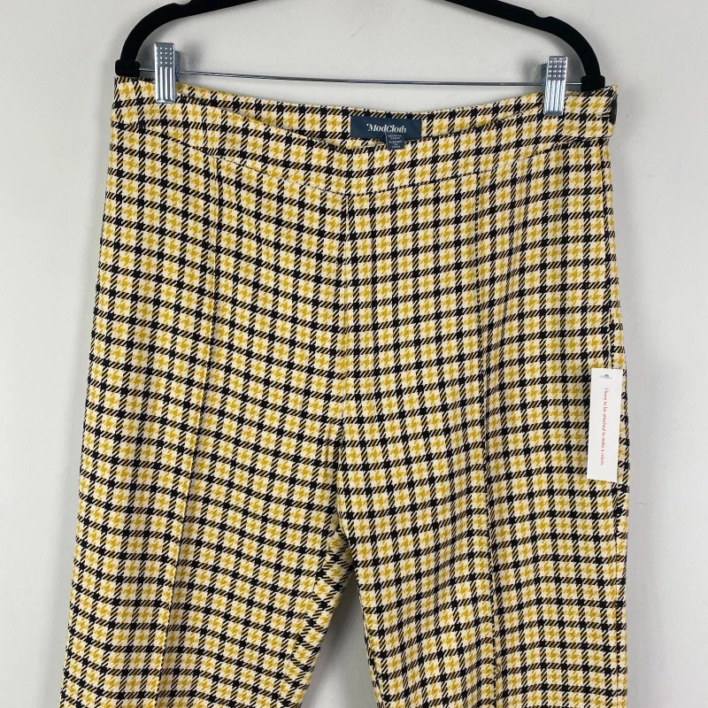 ModCloth Plaid Pants Womens 14 Yellow Black Boho Retro 90s Office Bootcut