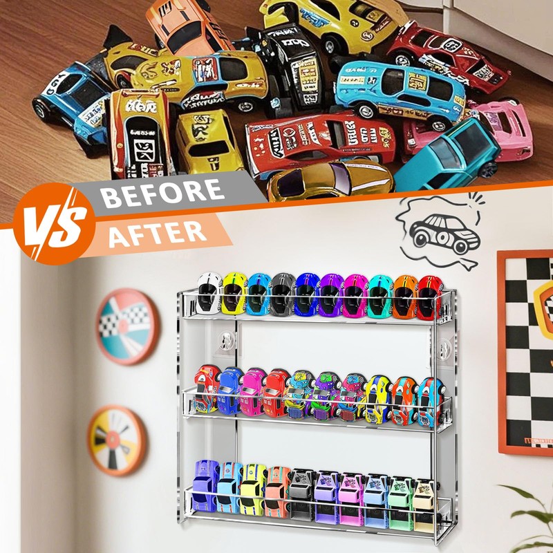 - Transparent for Display: Clear storage shelf for hot wheels cars is convenient to see and find the cars you want. Good display to show off your 1/64 car collection, great home décor with your collections inside.