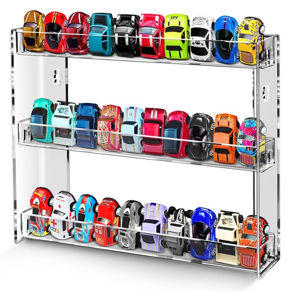 - Crystal Clear Display Holder: Made of high-quality acrylic, beautiful and creates a clear floating display effect. Perfect display shelf for mini cars and other small collections. Storage and display your favorite cars as home wall decor.