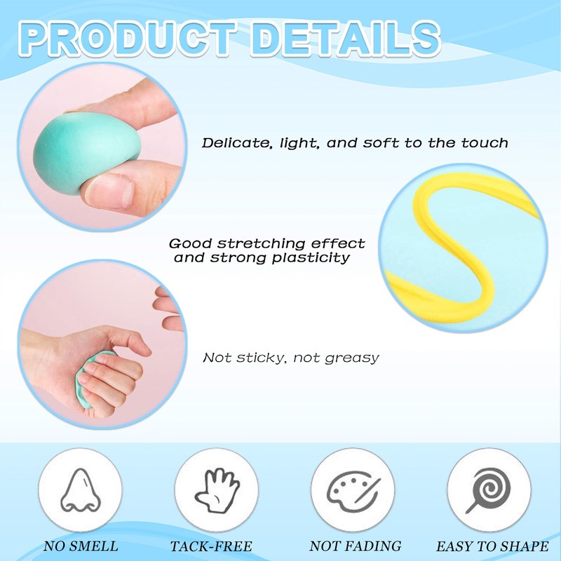 - 🛡️ Sicher und hochwertig: Die Knete besteht aus sicheren, ungiftigen Materialien und ist geruchlos. Sie ist weich, leicht zu formen und ideal für Kinder sowie Erwachsene. Ob als Freizeitbeschäftigung oder für Schulprojekte – diese Modelliermasse bietet sorgenfreien Bastelspaß.