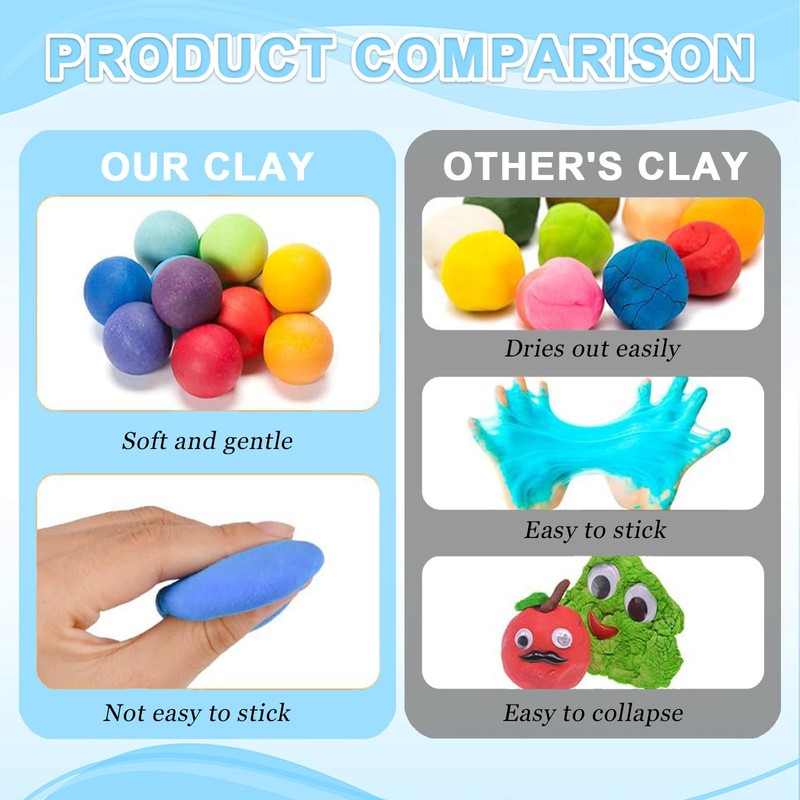 - 🏡 Für jeden Anlass & alle Altersgruppen: Ob für Kinder, Erwachsene oder DIY-Liebhaber – dieses Knete-Set eignet sich für Spieltreffen, Schulprojekte, Kunstunterricht oder gemütliche Bastelnachmittage zu Hause. Es fördert die Kreativität, motorische Fähigkeiten und bringt jede Menge Spaß beim Modellieren.