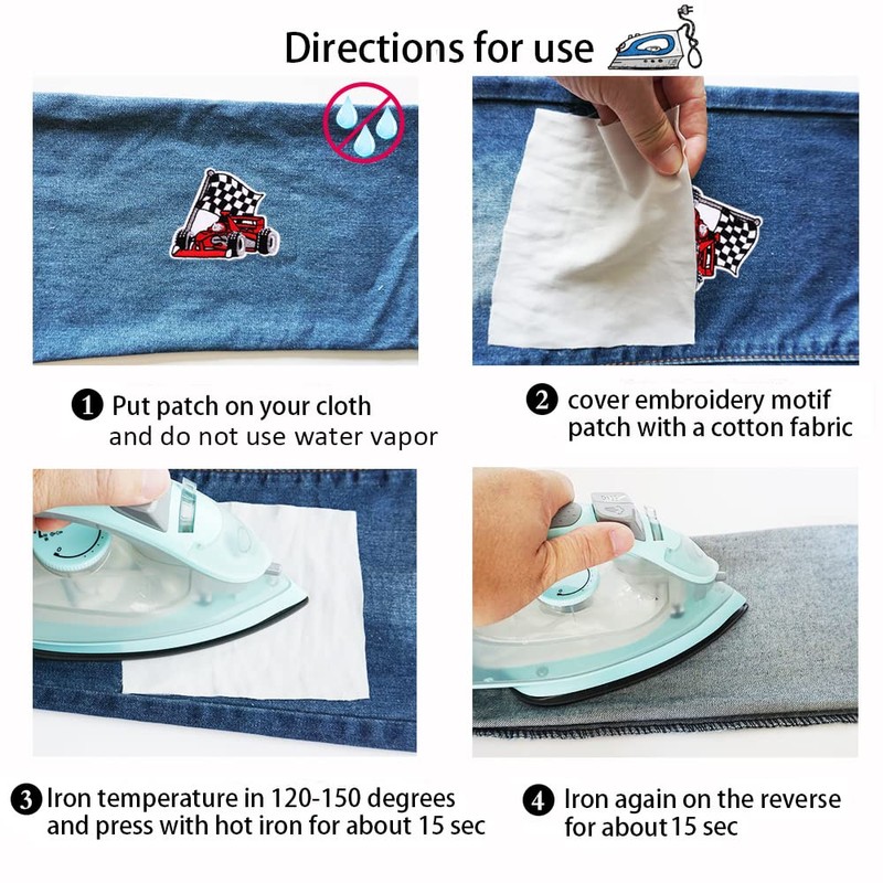 - There is adhesive on the back, you can sew it on your clothes. But to make it more firm and durable, please sew a few simple stitches after ironing.