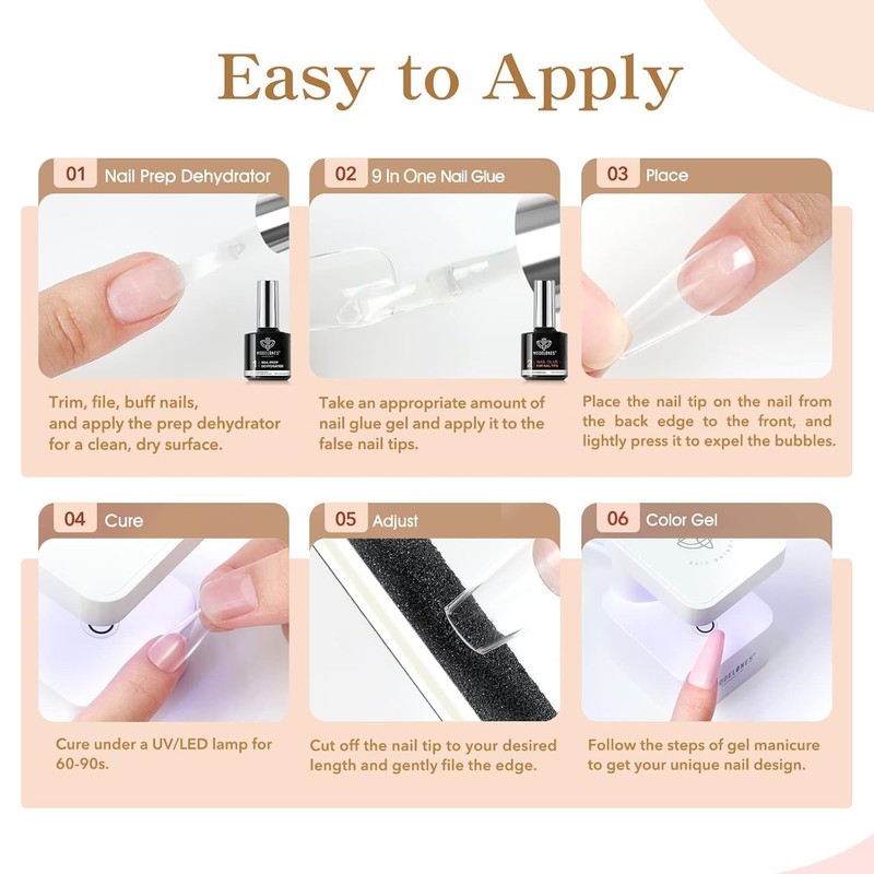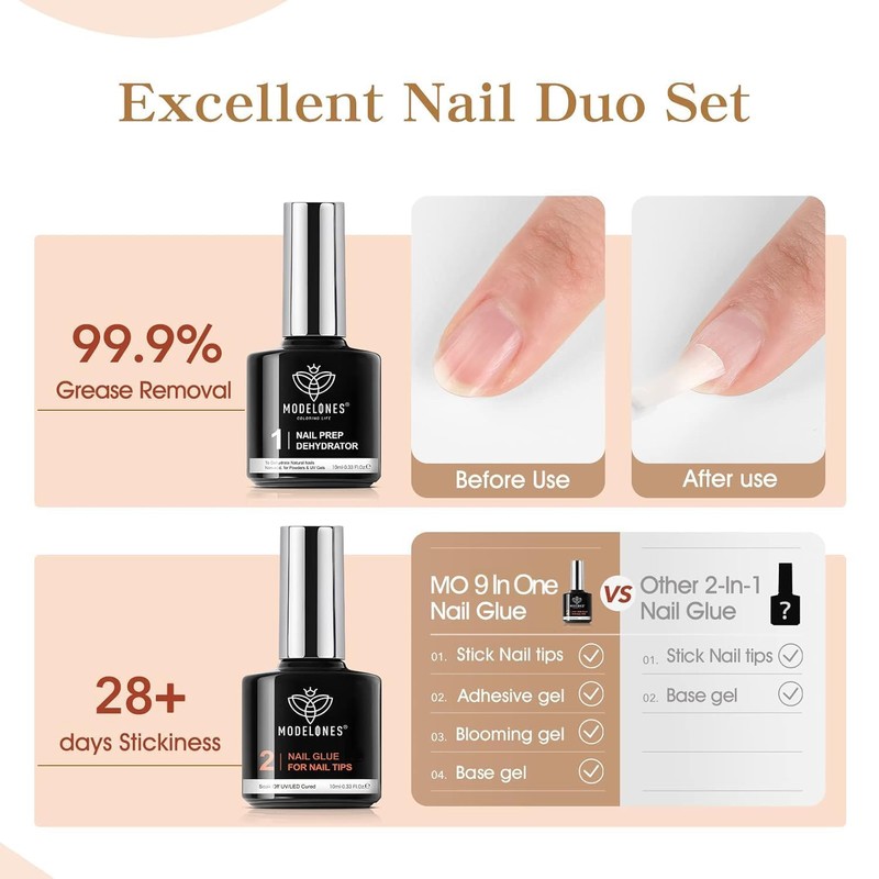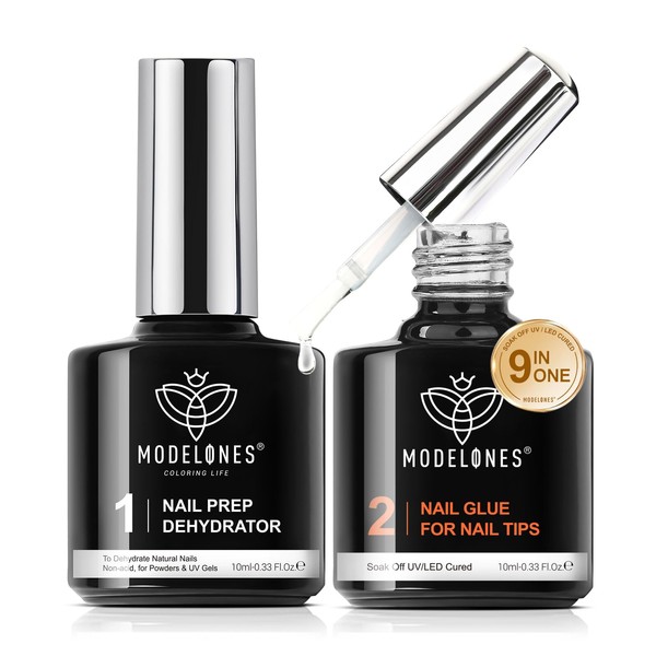 modelones 9 in One Gel Nail Glue Prep Dehydrator for Acrylic Nails Tips/Bloom Gel/Adhesive Bond, Long Lasting Curing Needed