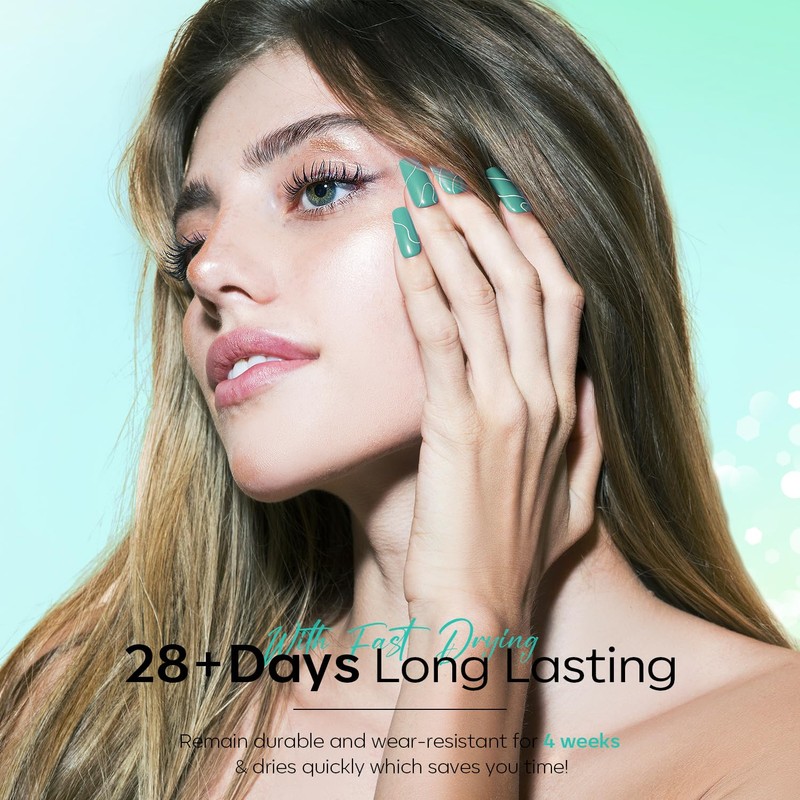 - Healthy & 28 Days No Peel-off: Modelones gel nail polish set is made of natural resin, it is non-toxic and has a low odor. No harsh ingredients or adhesives lead to damaged nails. High durability and Intense pigmentation green blue gel polish kit can stay last longer and brings you a brilliant shiny finish. Spend 3 minutes and long-lasting for 28+ days