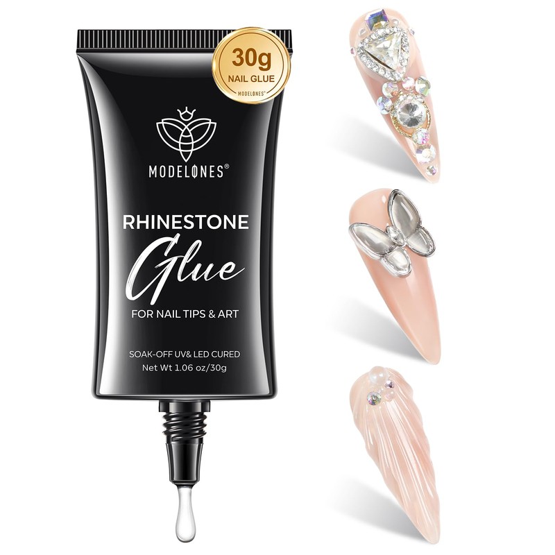 • 4 in 1 Nail Rhinestone Glue: Super strong u v nail glue for stick nail rhinestones; paste nail charms; 3D Nail Art; adhesive nail tips! And be yourself nails artist, you will get more nail art idea by modelones nail gel glue