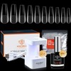 MODELONES Nail Tips and Glue Gel Kit, Gel x Nail Kit 15ML 4 In 1 Nail Glue Gel with 500Pcs Half Matte Coffin Nails and U V LED Nail Lamp Fast Nail Extension Set, Transparent, 7 ml