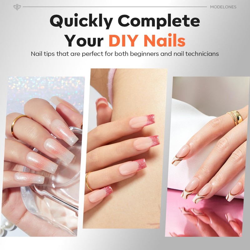 - Multiple Application: Modelones nails tips can be used for gel nail polish, liner gel art, press on nails, acrylic nails, dip powder nails, poly nail extension gel, great for nails salon, DIY at home nails art. Whether for everyday use, party looks, or special occasions, they provide the perfect solution