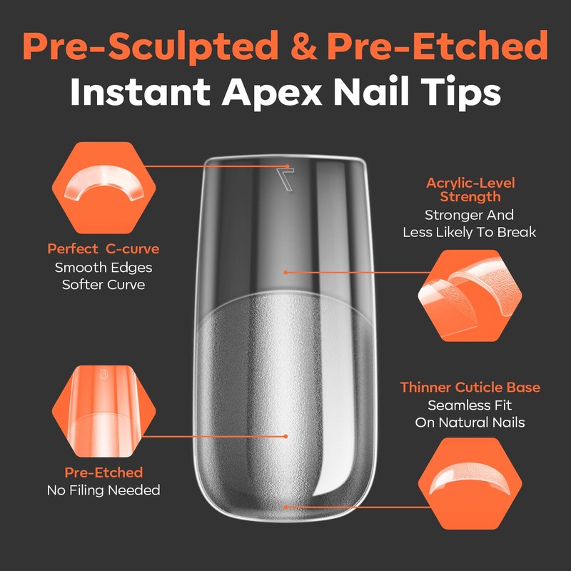 modelones Pro Luxe Instant Apex Nail Tips 15 Sizes, Medium Square Gel x Nail Tips Pre-building & Pre-etched Thicker Strength Acrylic Fake Nails Full Cover 240 Pcs
