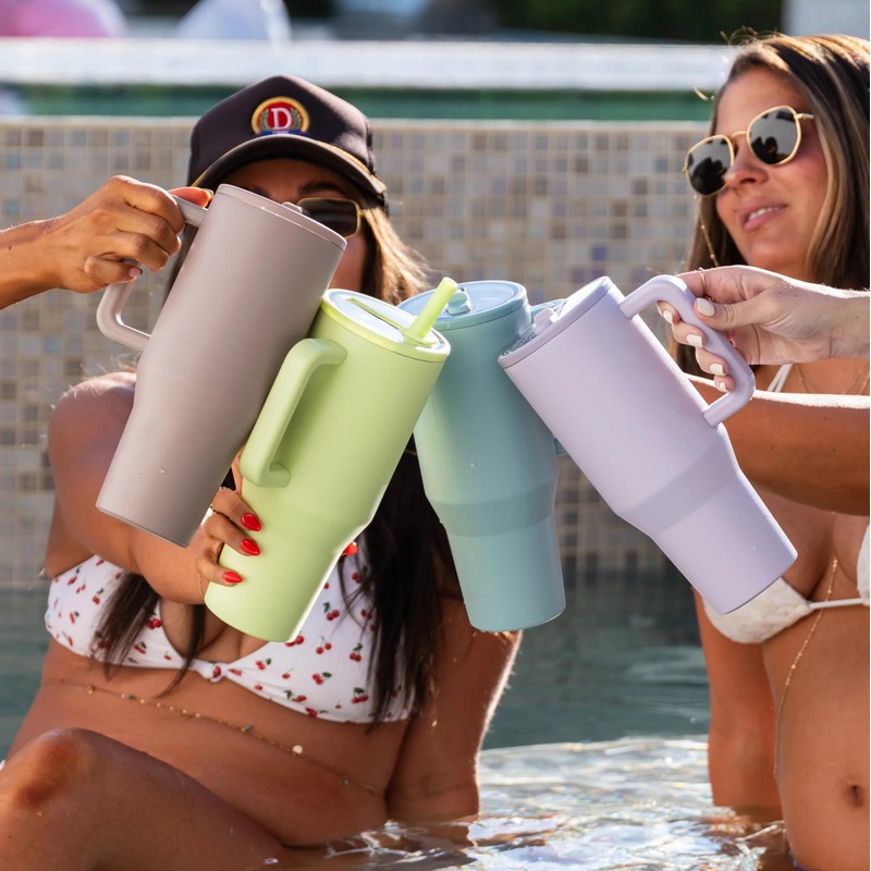 Modern 40 oz Tumbler with Handle & Simple Flip Straw - Car Cup Holders, Leak Resistant Water Bottle-Reusable Insulated Stainless Steel & Rubber Base - Gifts for Women & Men | Traveler (Lime Rickey)