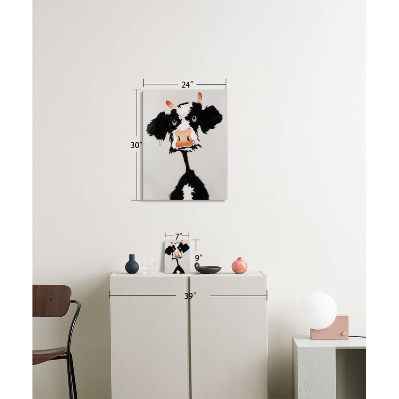 Modern Animal Pop Art - Framed - Mean Cow Canvas Print Home Decor Wall Art, Gallery Wrap Inner Frame, 7x9
