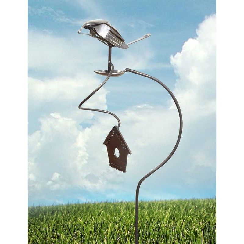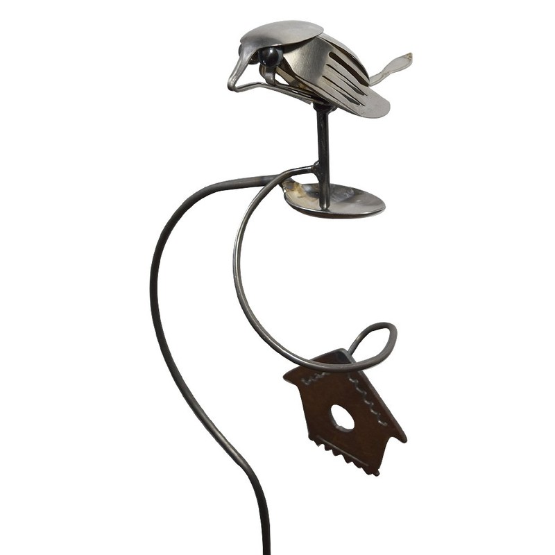 Modern Artisans American Made Flatware Finch Balancing Garden Stake and Upcycled Utensil Sculpture