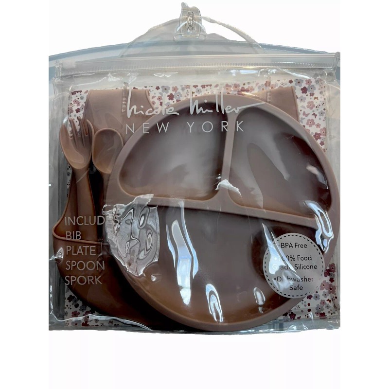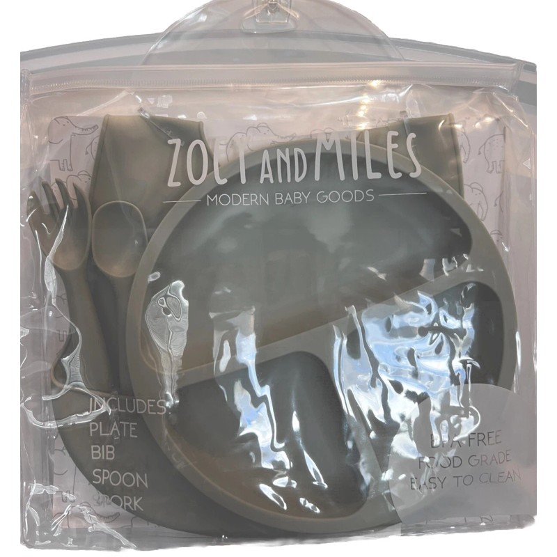 This plate set by Modern Baby Goods includes 4 plates made of 100% food-grade silicone in a multicolor design. The plates are BPA-free, easy to clean, and dishwasher safe, making them convenient for feeding babies and toddlers. The set also includes a bib, spoon, and fork, with the option to choose the color of the items. Made in China, this plate set offers a safe and practical solution for mealtime with little ones.