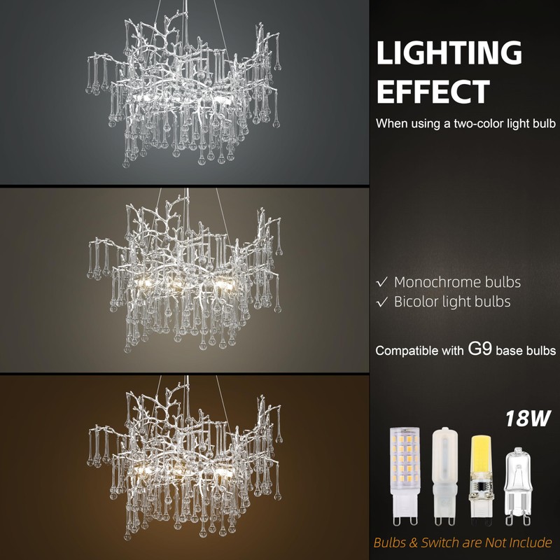 - [NATURE & ARTISTRY] - Imagine a tree branch, dusted with sparkling droplets after a rainstorm - that's the design inspiration behind our mesmerizing art deco chandelier.Note: The Raindrop Chandelier requires installation, please read the instructions.