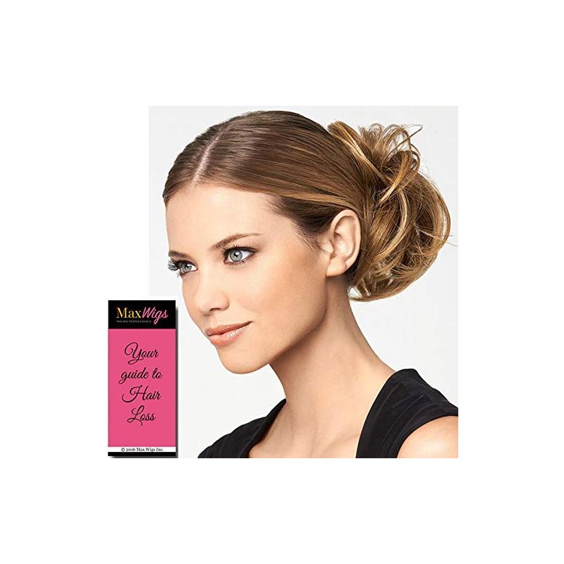 Modern Chignon by Hairdo is an easy-to-attach, loose chignon-style hairpiece that features softly waved hair with alternate hair lengths of 5" to 6" on a contoured bear-claw clip. The bear-claw clip attachment has been specially designed to work easily with your own hair for a soft, loose chignon effect. In addition, because it's made with heat-friendly Tru2Life synthetic hair, this piece can be curled or straightened with thermal styling tools to blend seamlessly with your own hair's texture. Just pull your hair back into a bun or pony tail at the nape, slip the bear claw clip over your hair, and you have a fashionable style that's as individual as you are! Modern Chignon Color R6 DARK CHOCOLATE - Hairdo Hairpieces Claw Clip Loose Hair Bun Tru2Life Heat Friendly Synthetic Soft Waves Bundle Maxwigs Hairloss Booklet