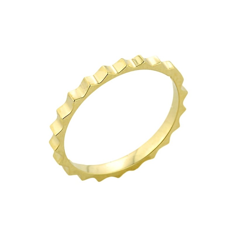 Modern Contemporary Rings Stackable 14k Yellow Gold Gear Cut Mid Finger Band Knuckle Ring, Size 8
