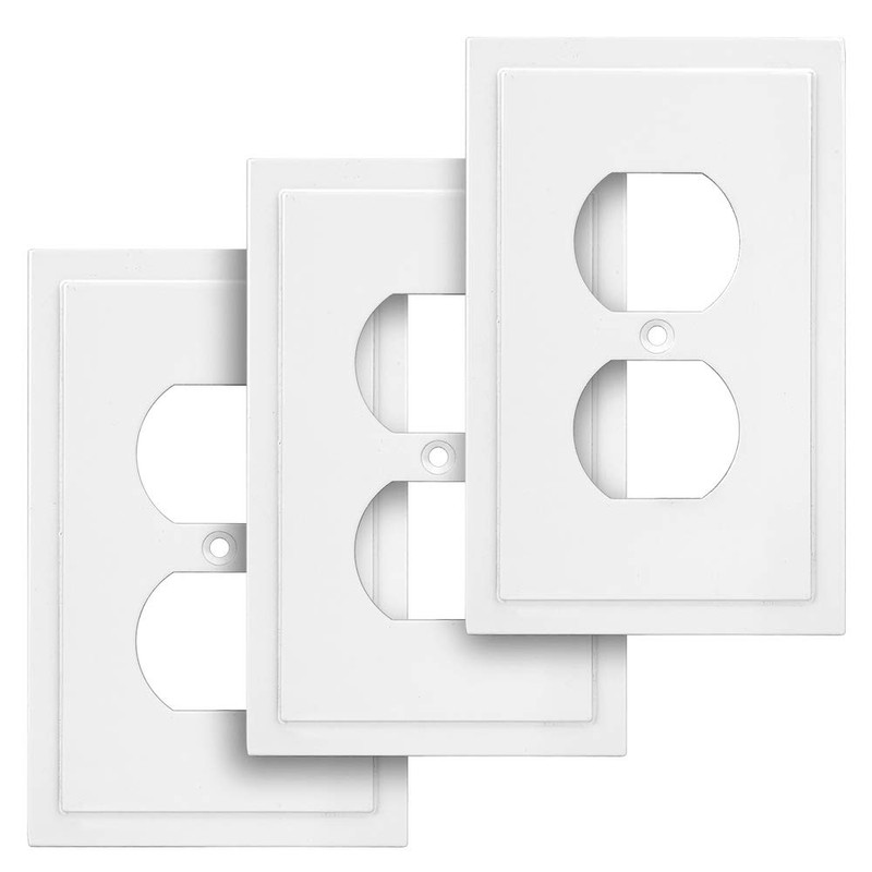 Modern Edge Decorative Wall Plate Switch Plate Outlet Cover, Durable Solid Zinc Alloy (Single Duplex, 3 Pack, White)
