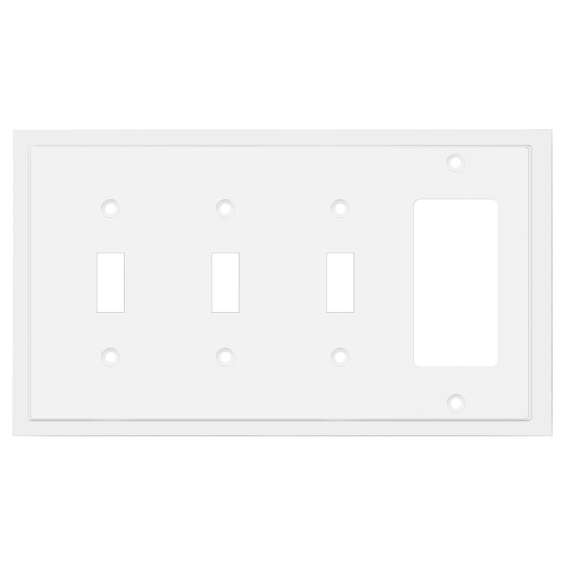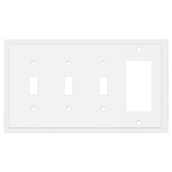 Modern Edge Decorative Wall Plate Switch Plate Outlet Cover, Durable Solid Zinc Alloy (Triple Toggle/Single Decorator, White)