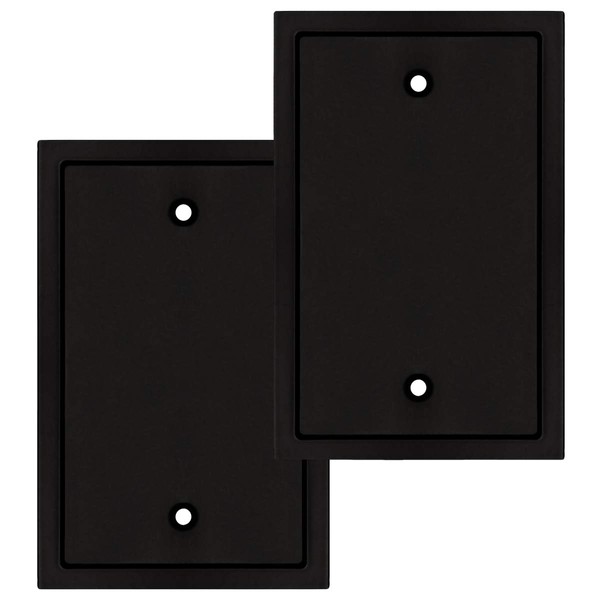 Modern Edge Switch Plate Wall Plate Outlet Cover, Durable Solid Zinc Alloy (Single Blank 2PK, Matte Black)