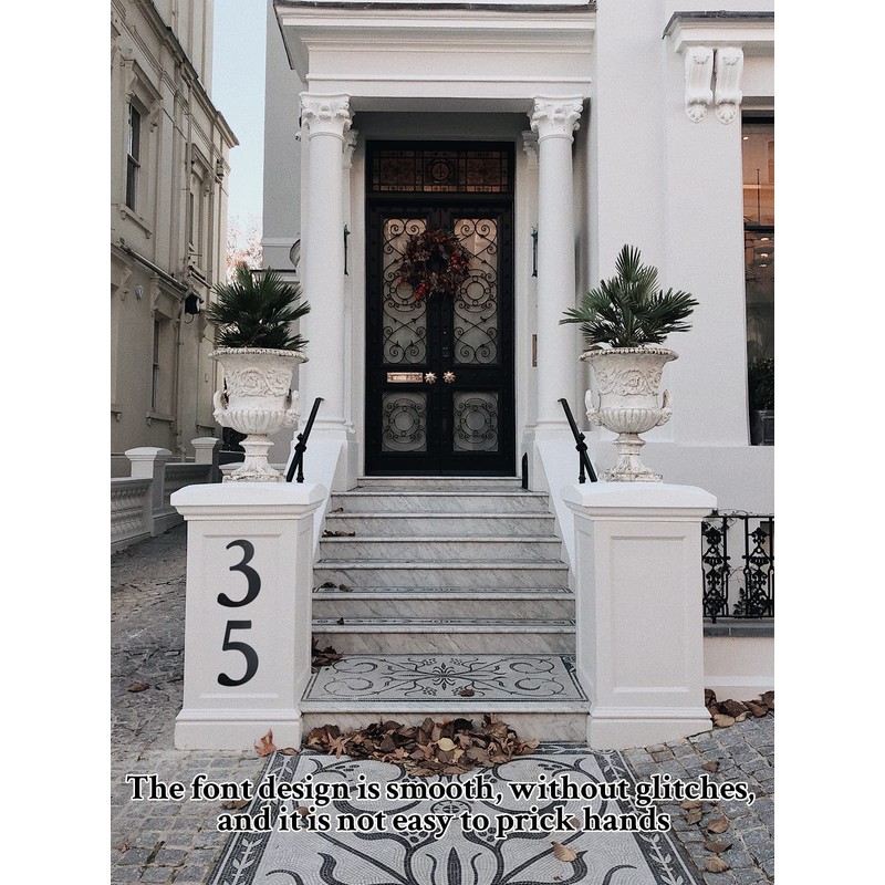• NUMBER DIMENSION 11 inches high, 0.02 inches thick, large enough to be seen from a distant road, and will surely make your home unique and attractive, also these elegant numbers will surely make your home/house/front yard/mailbox/office/. Business store/vacation home/garage door with a new fresh look.