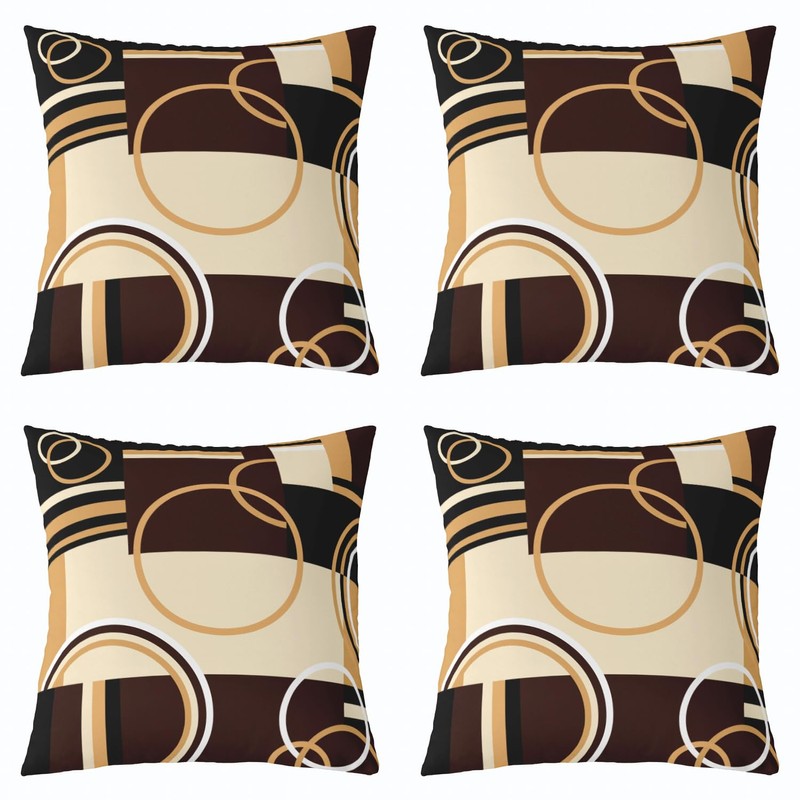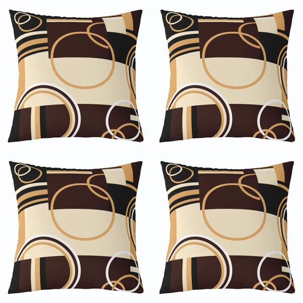 Modern Geometric Throw Pillow Covers 16x16 Set of 4 Brown Black Stripes Cushion Covers For Lumbar Support Bedroom Retro Circle Swirls Pillow Covers Abstract Texture Decorative Accent Pillow Cases