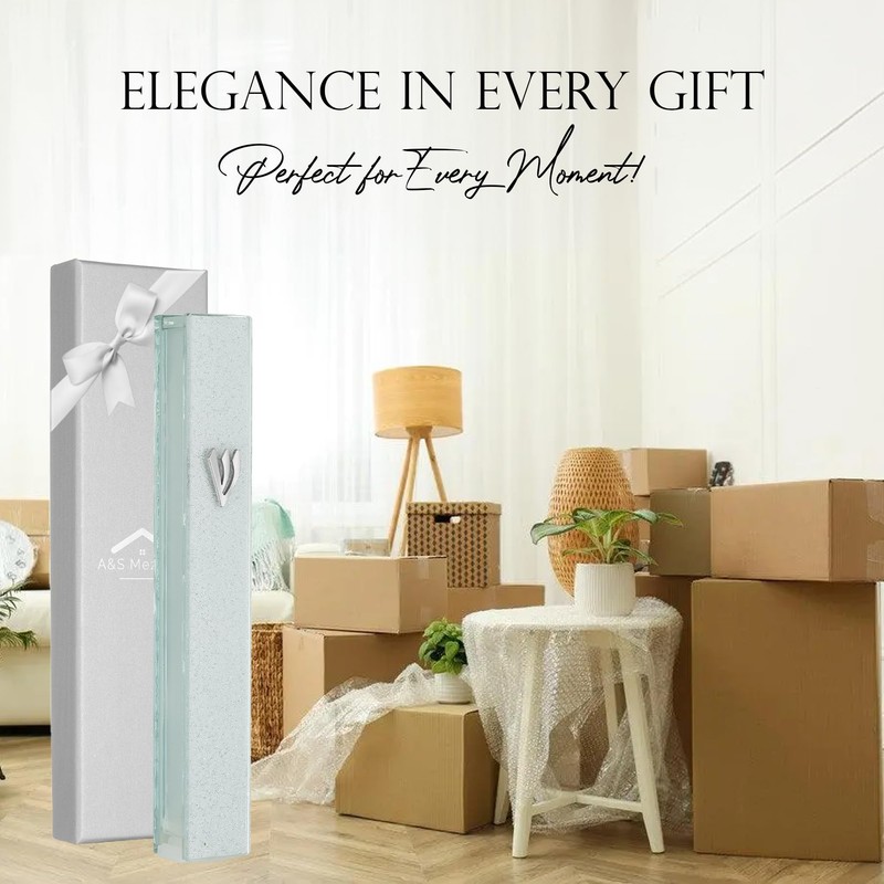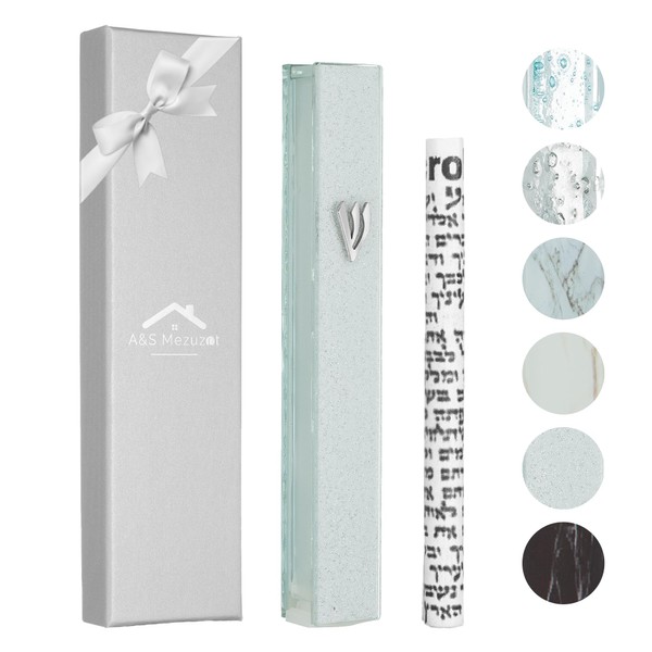 Modern Glass Mezuzah Case for Door with Non-Kosher Scroll Shatterd Glass Design Waterproof Mezuza Cover Home Blessing and Protection