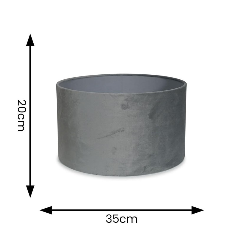 Modern Grey Velvet Cylinder Ceiling Pendant Lampshade/Table Lamp Drum Light Shade - Medium