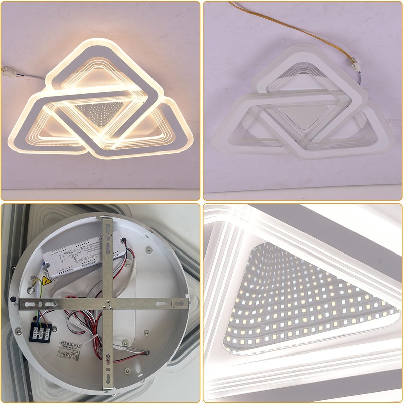 - Stylish & Modern Design: Make a statement with the sleek, geometric design office ceiling light featuring three overlapping shapes that form an equilateral triangle. Each shape is lined with multiple LED chips, offering a futuristic and sophisticated look for your bedroom, living room, or office