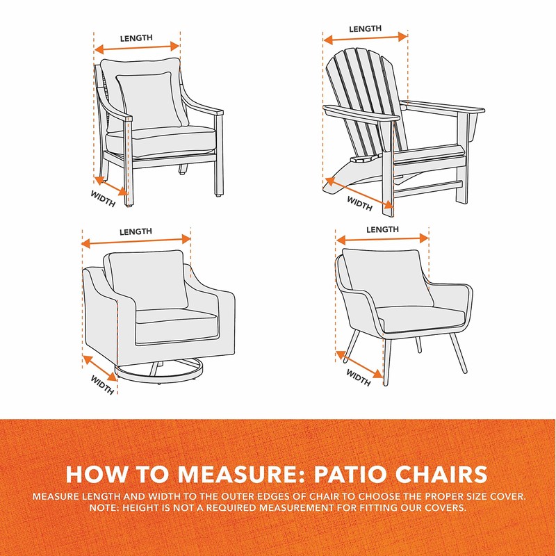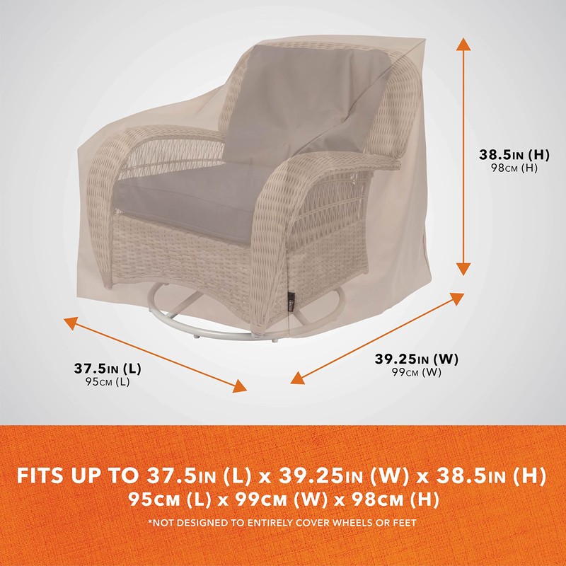 • PATIO SWIVEL CHAIR COVER: Fits most standard swivel chairs up to 37.5-inches long x 39.25-inches wide x 38.5-inches high—not designed to entirely cover wheels or feet.