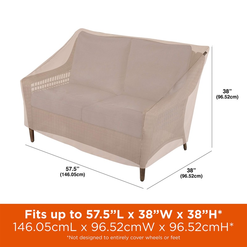 - LOVESEAT & SOFA COVER: Fits most patio loveseats & sofas up to 57.5-inches long x 38-inches wide x 38-inches high.