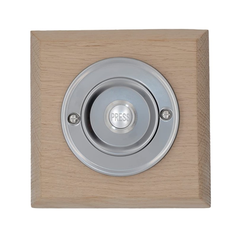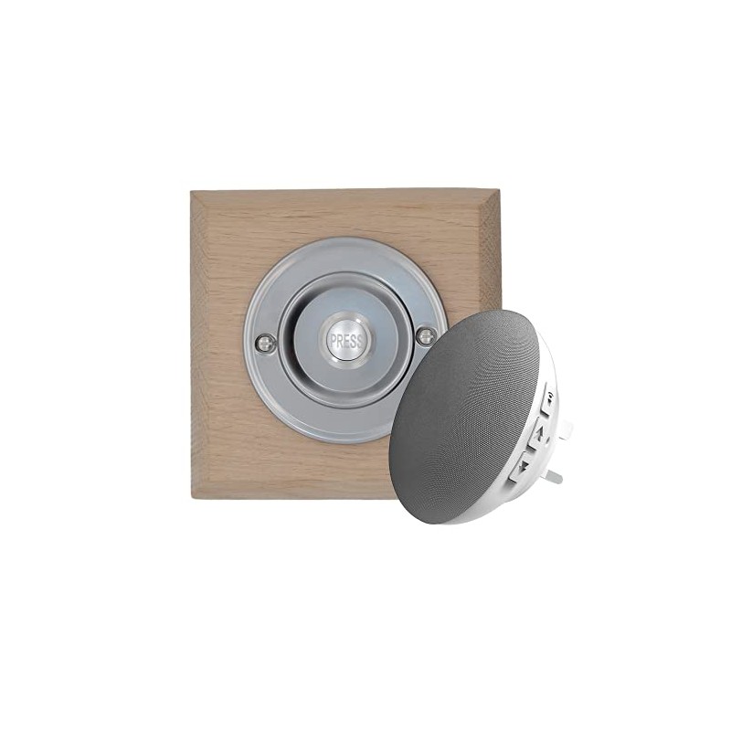 Modern Living Square Wireless Doorbell in Natural and Brushed Nickel - Nickel Press - Plug in F5R-Recordable