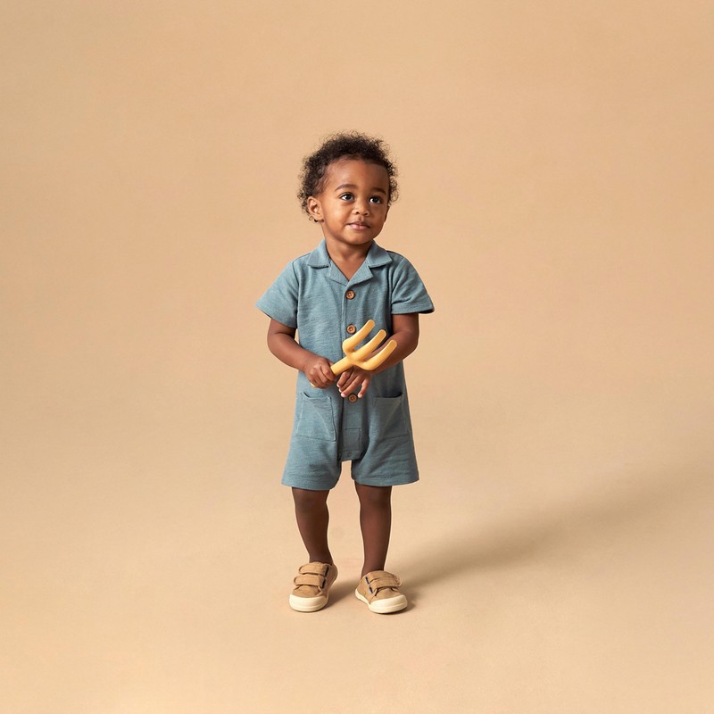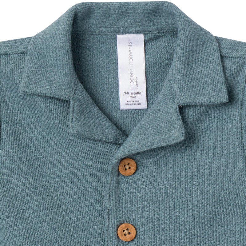 Modern Moments by Gerber Baby Boys' Collared Short Sleeve Romper, Dark Teal, 24 Months