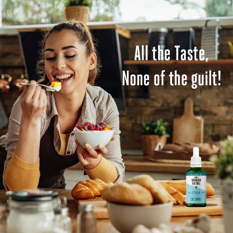 Modern Nature Stevia Flavour Drops - Coconut 100 ml - No Calories, No Sugar - Aroma Drops for Sweetening, Coffee Zero Syrup