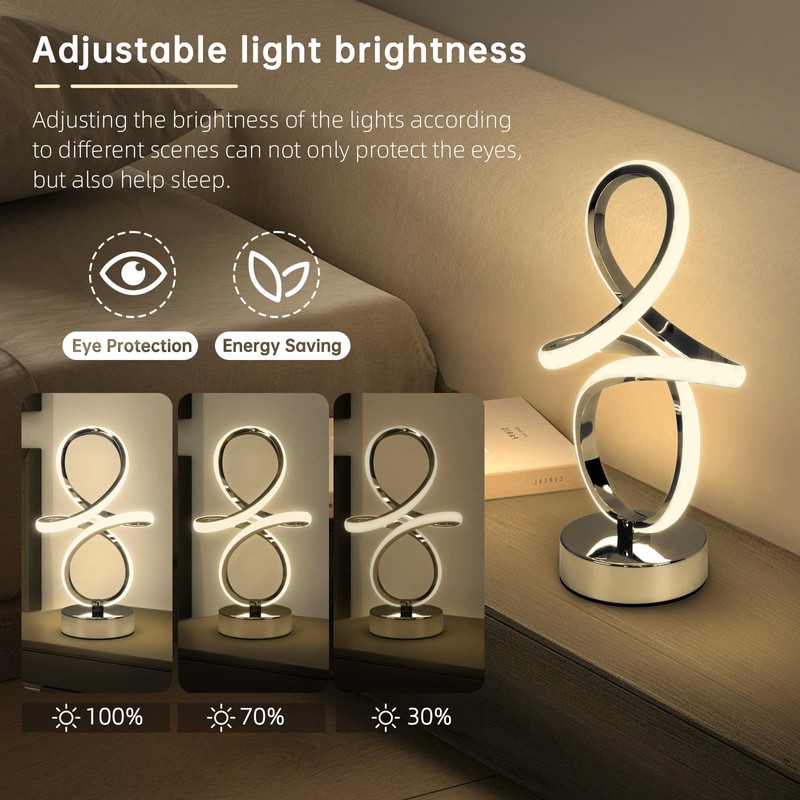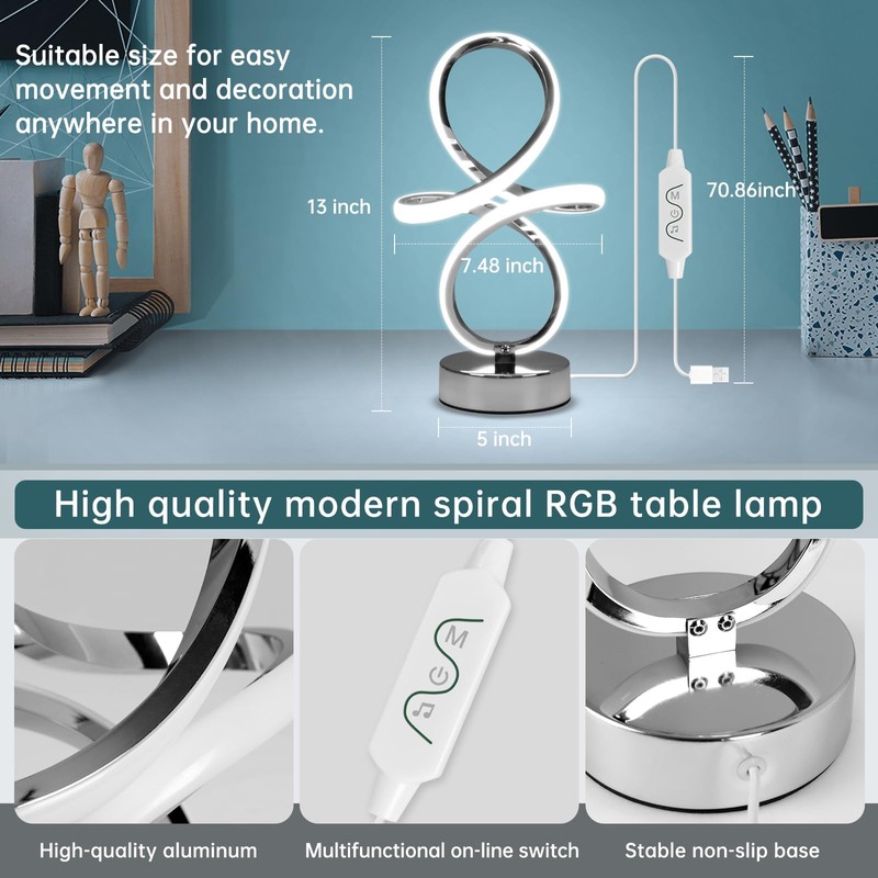 Modern RGB Table Lamps, LED Spiral Table Lamp, Silver Bedside Lamp with Remote&APP, Multicolor Changing Nightstand Lamp with Music Rhythm Modes for Bedroom, Living Room, Gaming Room, Christmas Gifts