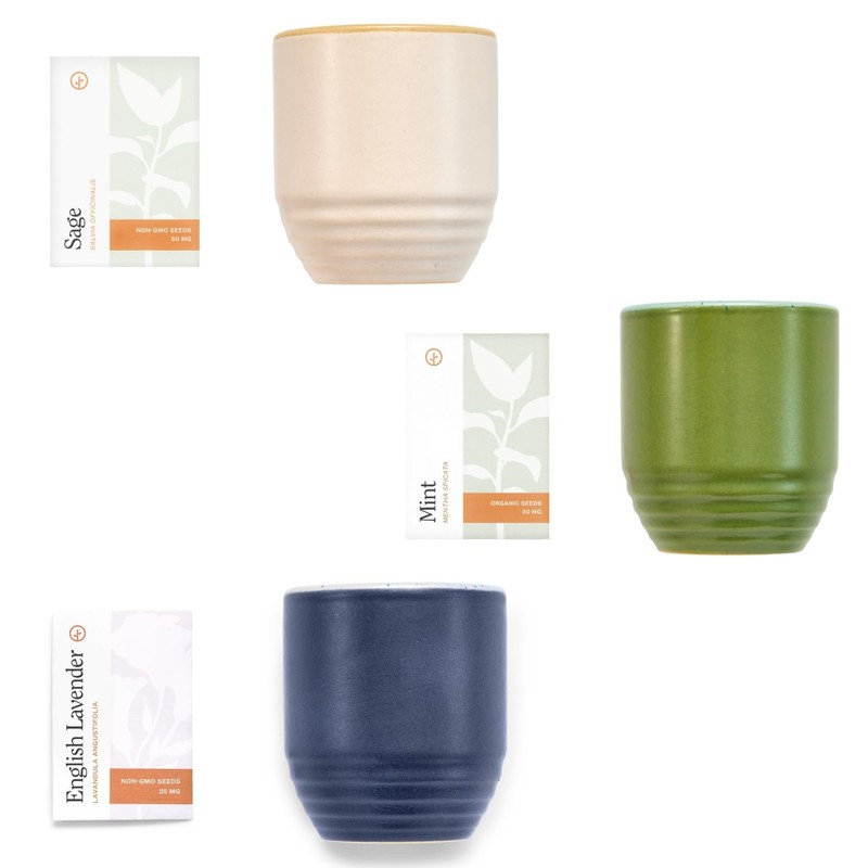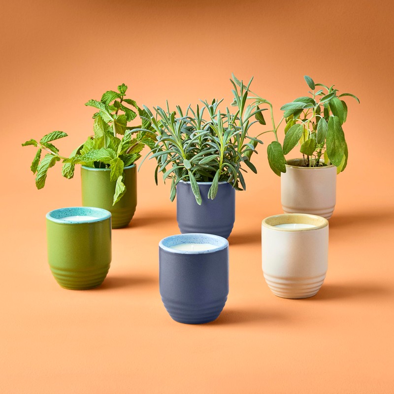 - Package Contents: Modern Sprout Garden Vibes 2-in-1 Candle/Planter 3-Pack – Includes three 6 oz indoor soy candles: Violet Hour, In The Weeds, and Golden Moments. Each candle comes with a reusable ceramic vessel and includes one packet of non-GMO seeds to grow lavender, mint, or sage
