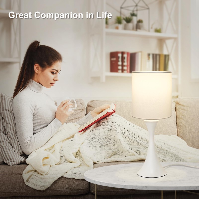 - 3-way Dimmable & Touch Control: Just need to tap the lamp base with your finger, you could change the light brightness on 3 stage (Low, Medium,High) conveniently. No need to get up in the middle of the night to search for a small switch any more, this white table lamp would let you catch up on your sleep easier and cosier.