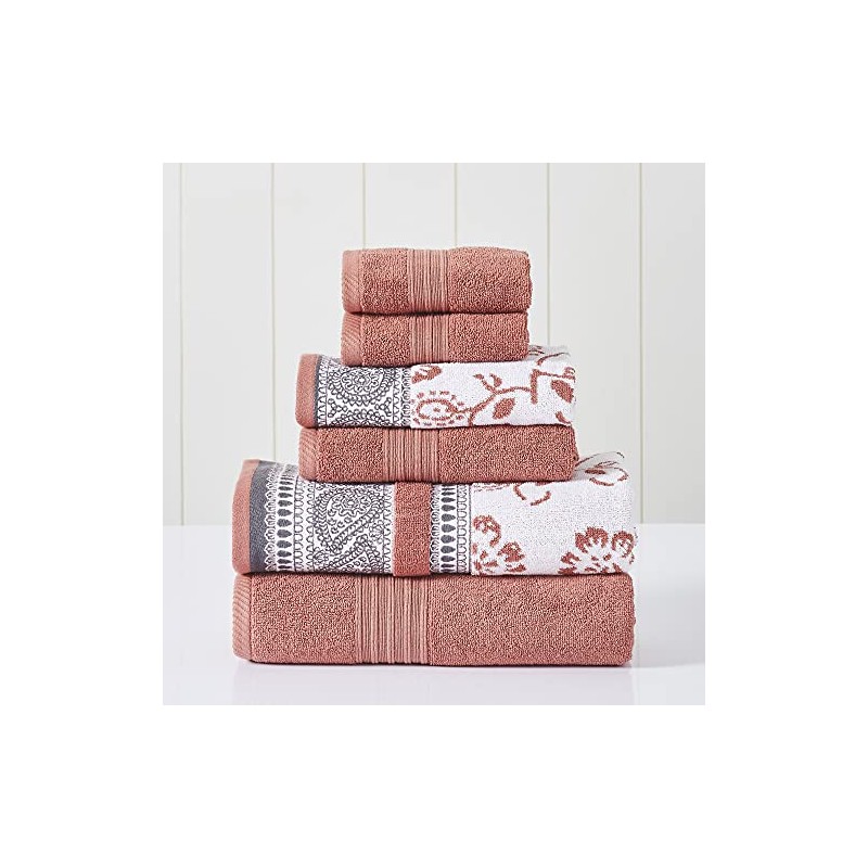 Modern Threads 6-Piece Yarn Dyed Jacquard/Solid Towel Set Ophelia Clay Standard